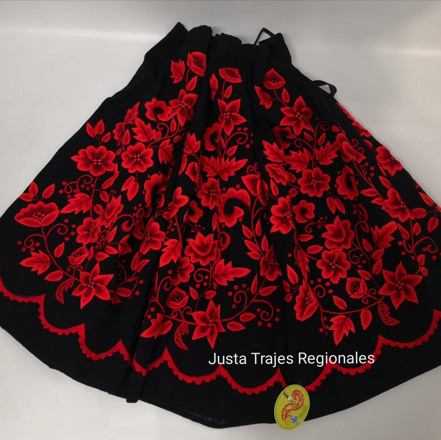 Refajo de 3,25 metros de vuelo, bordado a mano en lana. Dibujo muy antiguo. Es un refajo muy murciano y lleno de bordado. Lleva muchas horas de trabajo. Una joya para toda la vida, muy elegante.